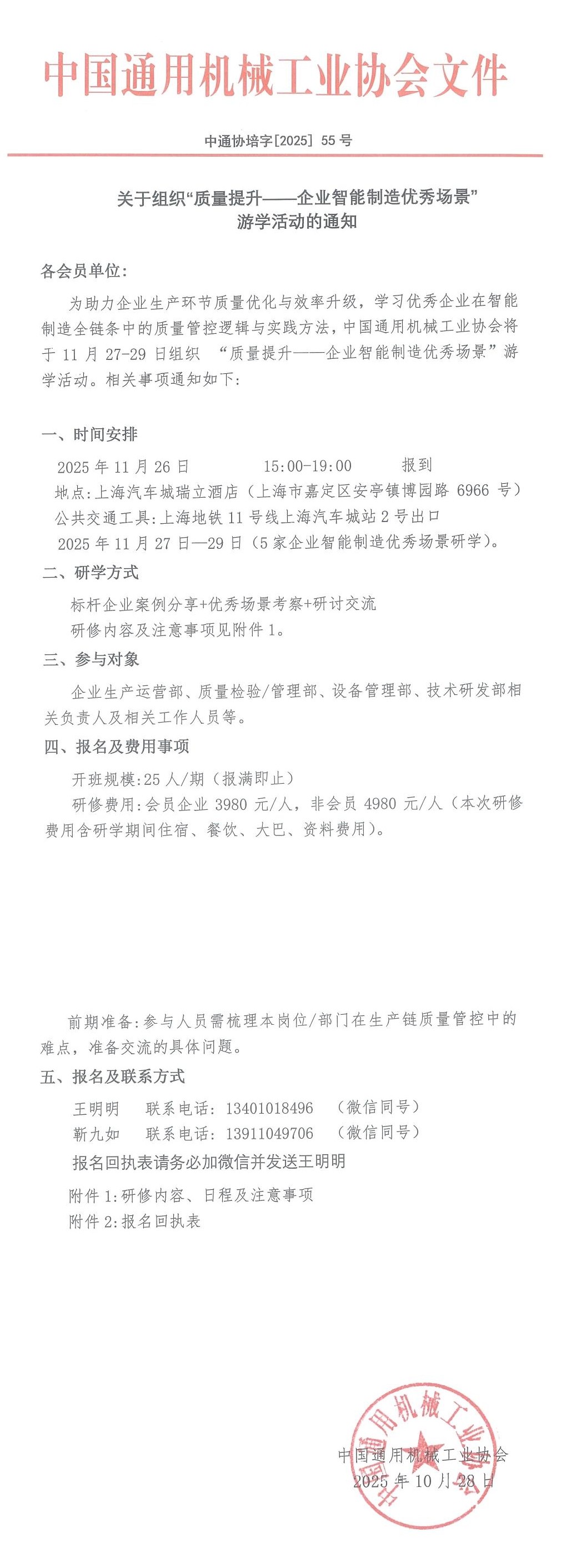关于组织“质量提升——企业智能制造优秀场景”游学活动的通知