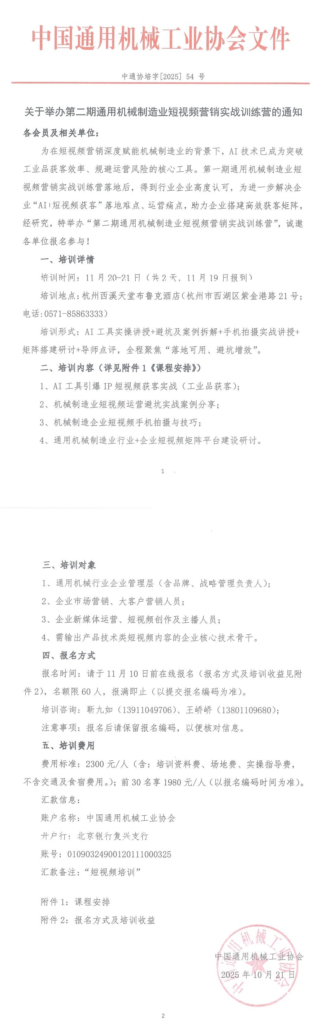 关于举办第二期通用机械制造业短视频营销实战训练营的通知