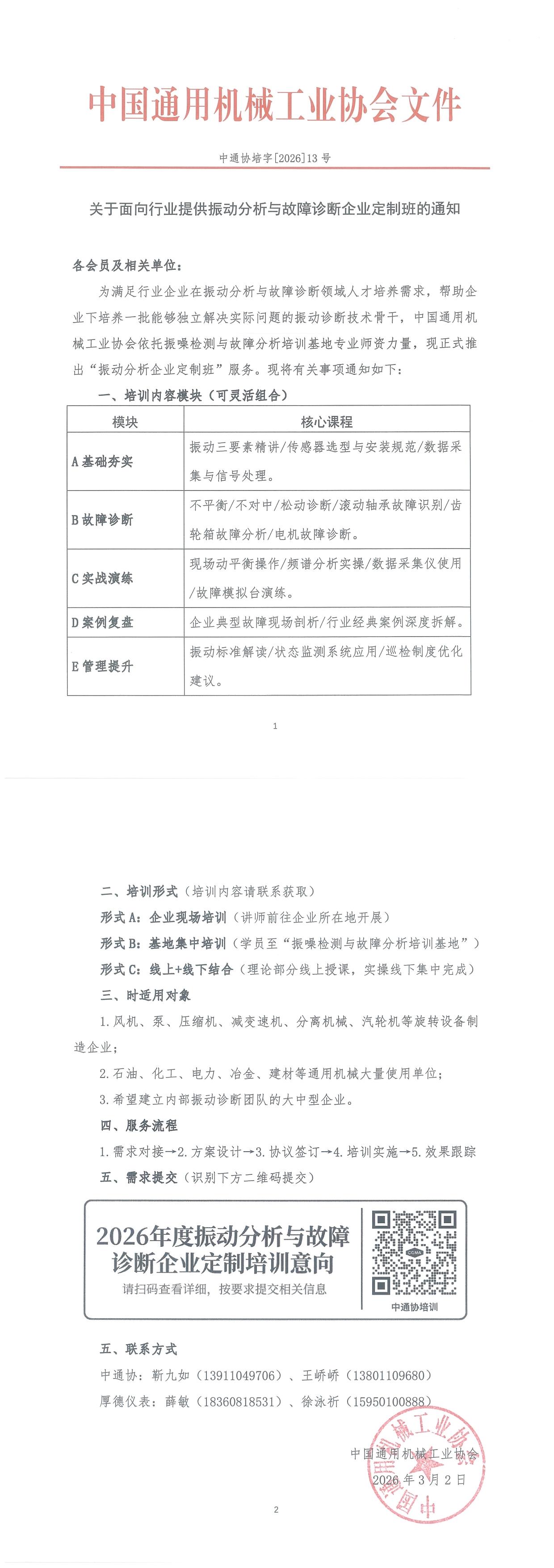 关于面向行业提供振动分析与故障诊断企业定制班的通知