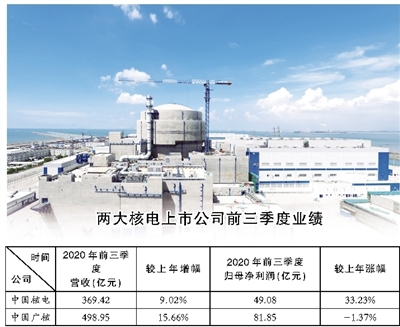 两家公司均在报告中指出,核电发电量的持续增长为公司营收增加创造了条件。根据此前披露的运营数据,今年1-9月,中国核电、中国广核运营核电机组发电上网电量分别同比增长6.4%和8.81%。