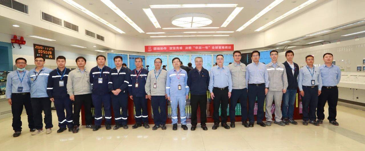 从2015年5月7日开工建设到2020年11月27日并网发电,华龙一号全球首堆工程各项节点稳步推进,安全质量可控。在2000多个日夜里,近万名核工业人在探索自主三代核电发展的征程上努力奋斗,踏出了一条国产化核电发展的成功之路——形成一套完整的、自主的型号标准体系,所有核心零部件均已实现国产,国产化率达到85%以上,完全具备了批量化建设的能力。同时,中核集团联合58家国有企业,联动140余家民营企业,带动上下游产业链5000多家企业,共同突破了411台核心装备的国产化,形成700余件专利、120余项软件著作权、1项国际核电标准,涵盖核电厂前期、设计、设备、建设、调试等全生命周期,有力支撑华龙一号批量化建设和“走出去”。
