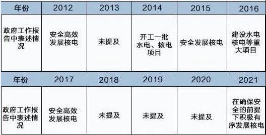 2012-2020年政府工作报告中关于核电的表述如下: