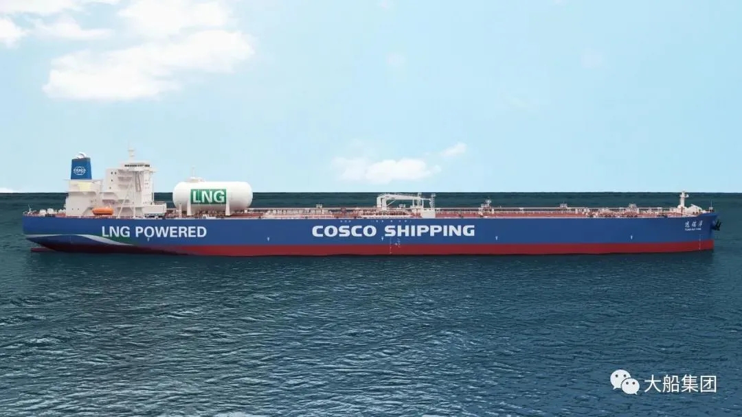 5月28日,中国船舶集团大船集团为中远海运集团建造的全球首制双燃料超大型原油船的2x3500m³C型LNG低温储舱交付。