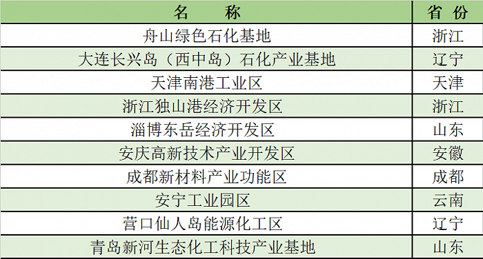 2021年中国化工园区潜力10强名单。名单来源:中国石油和化学工业联合会化工园区工作委员会