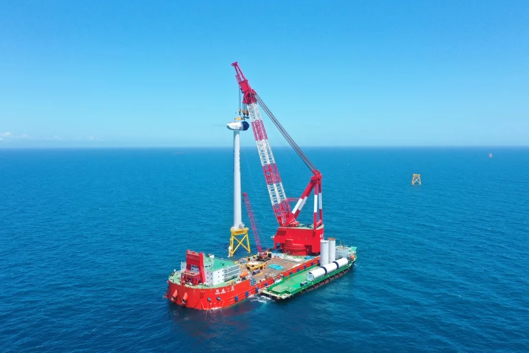 这是国内首次在外海浮态安装大兆瓦风机此项工艺创新将会给海上风电行业施工创新起到极大的推动作用。