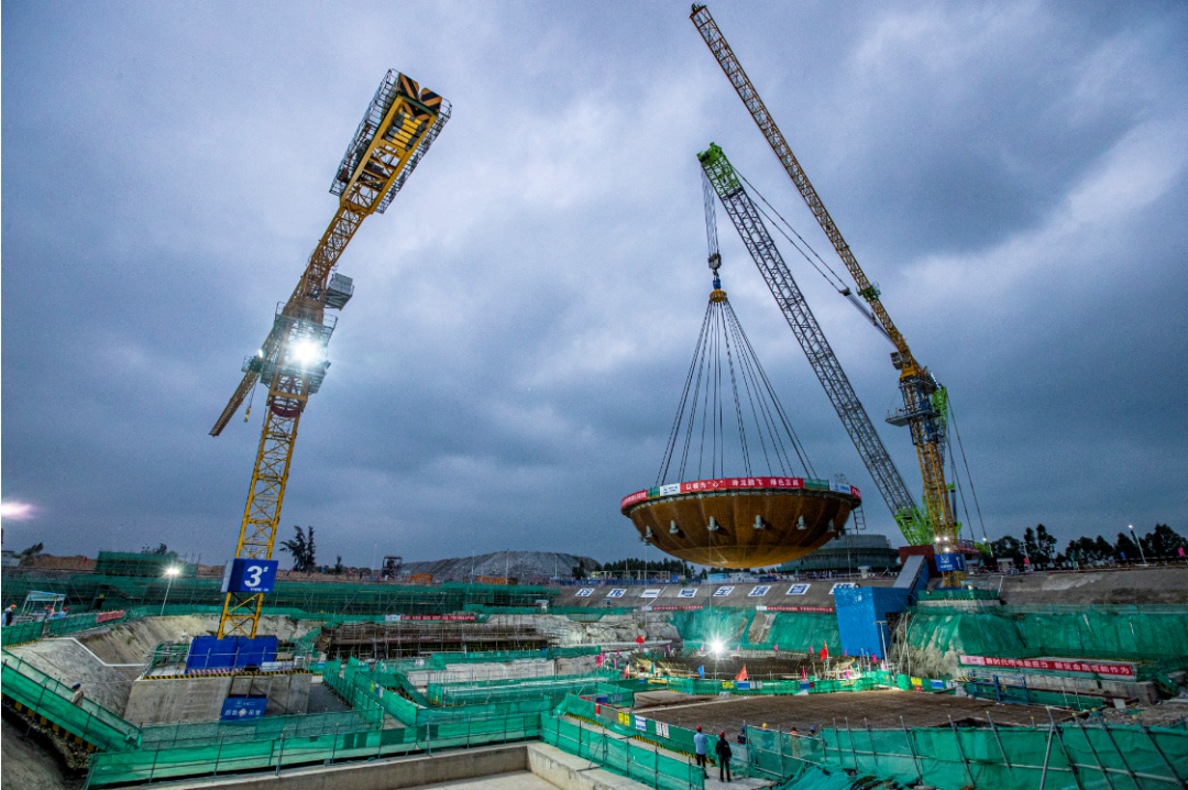 全球首个陆上商用模块化小堆玲龙一号钢制安全壳底封头24日在海南昌江提前吊装完成。这是海南昌江多用途模块式小型堆科技示范工程建设的重要里程碑,为后续反应堆厂房主体结构施工奠定坚实基础。