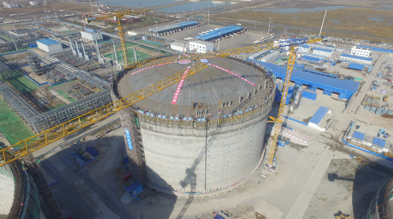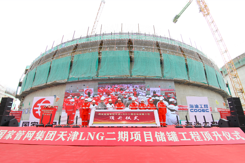 11月15日,由中国海油旗下海洋石油工程股份有限公司(简称海油工程)牵头总包的国家石油天然气管网集团有限公司(简称国家管网)天津LNG二期项目,顺利实现两座国内最大直径22万方储罐同时升顶,创造国内首次“两座储罐同时升顶”的新纪录,投产后将进一步提升华北天然气保供能力。