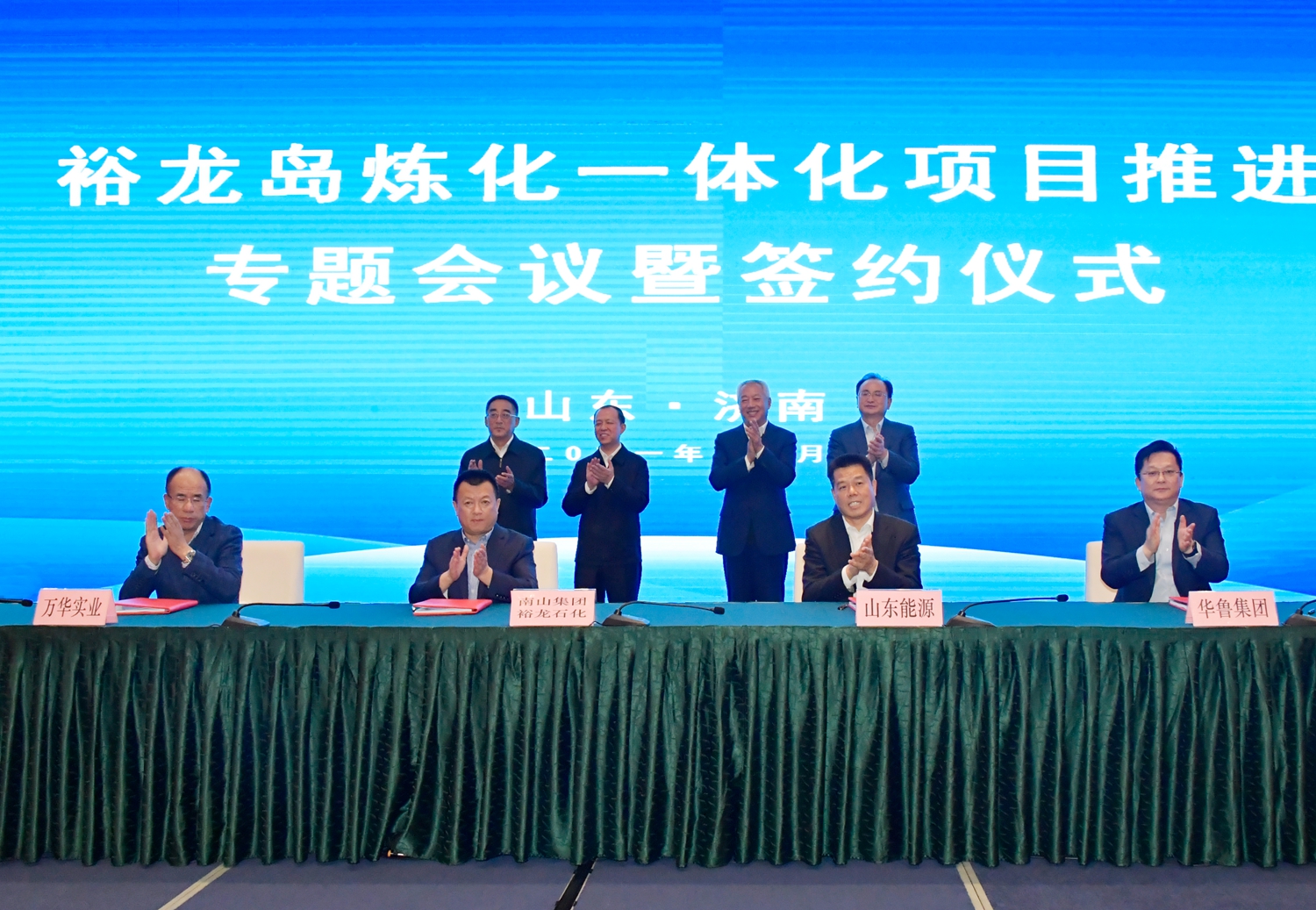 山东裕龙岛炼化一体化项目再有新进展。据山东能源官微发布,11月22日下午,裕龙岛炼化一体化项目推进会议暨签约仪式在济南举行。签约仪式上,南山集团、山东能源、万华实业、华鲁集团负责人共同签署公司《章程》,南山集团、山东能源、万华实业、华鲁集团、裕龙石化负责人共同签署《增资扩股协议》。