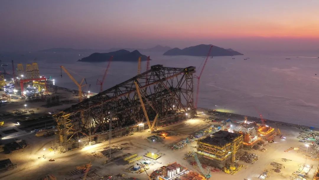12月7日,我国自主设计建造的亚洲首例300米级深水导管架——中国海油南海东部陆丰15-1油田导管架在珠海顺利完成主结构合拢,标志着我国在超大型海洋油气平台导管架设计、建造技术上取得了新突破。