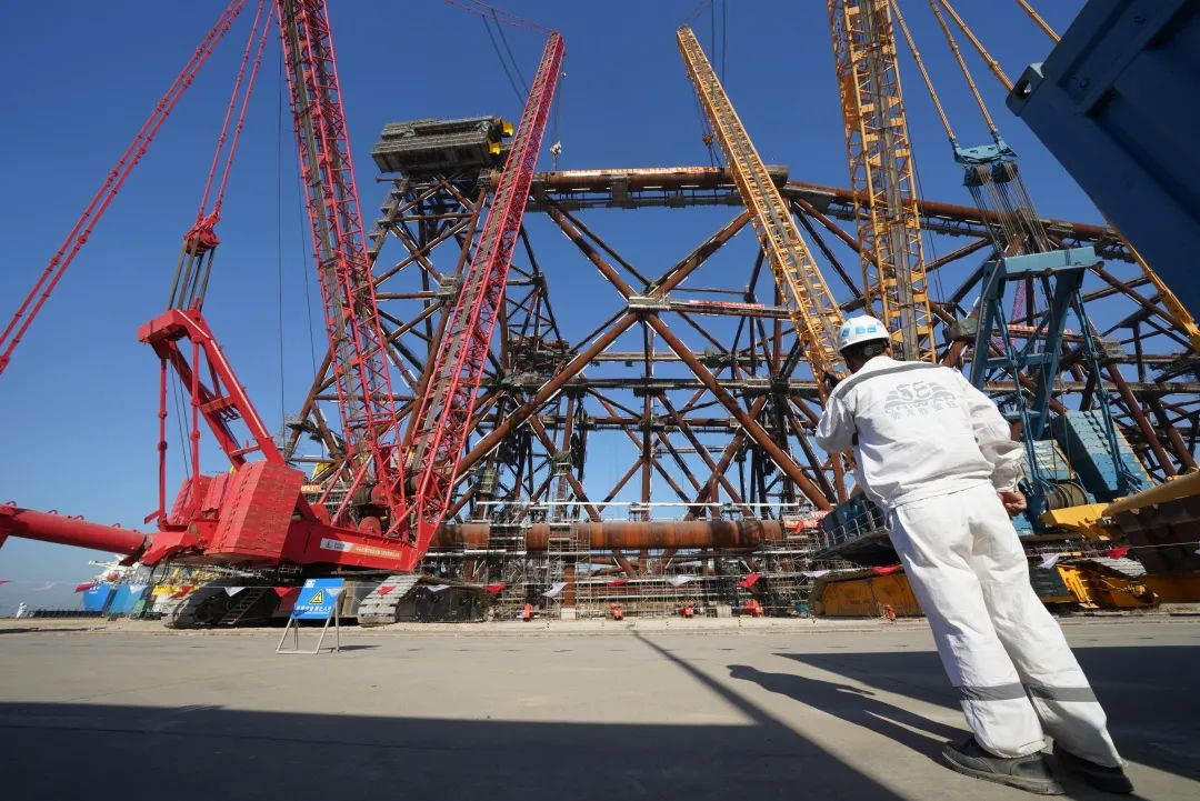 导管架相当于海洋油气平台的“地基”,用于支撑海上平台的庞大身躯与巨大吨位,是世界范围内应用最广泛的海洋油气开发装备。陆丰15-1导管架设计总高度达302米,相当于110层楼高,总重量达3万吨,所用钢铁可以制造约3万辆轿车,焊口总计超过5万道,焊缝总长可以绕地球赤道3圈多。建成后,导管架将服役于陆丰油田群区域开发项目,该油田群高峰年产原油达185万吨,对服务粤港澳大湾区发展、保障国家能源安全具有重要战略意义。