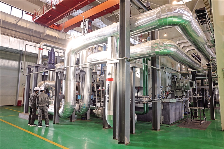 记者在机组运行现场看到,与传统的蒸汽机组相比,这套装置体量小了不少。工作人员告诉记者,机组运行时,高温高压二氧化碳气体代替传统发电机组的水蒸气推动汽轮机旋转,进而带动发电机发电,实现二氧化碳气体循环使用,有效降低碳排放。