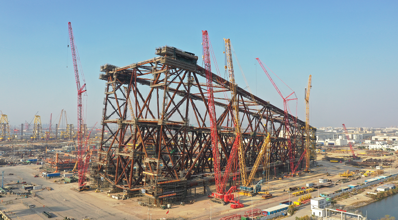 导管架相当于固定式海上油气平台的“基座”,用于支撑平台的庞大身躯与巨大吨位。“海基一号”总高度达302米,与北京国贸大厦高度接近,重量达3万吨,所用钢铁可以制造1艘中型航空母舰,是亚洲首例300米级深水导管架。“海基一号”将服役于我国南海东部陆丰油田群陆丰15-1平台,平台上部组块重1.1万吨,甲板面积达7700平方米,平台建成后,将刷新我国海上原油生产平台的重量纪录。