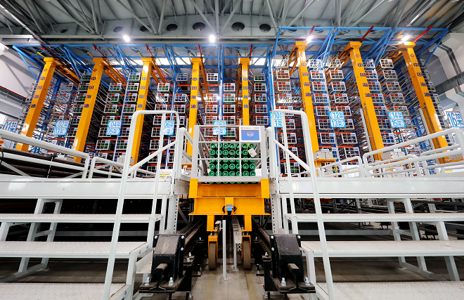 赵峰介绍说,大型立体智能仓库的仓储容量达到改造前的1.9倍,全面使用标准容器存储物资。由于采用智能仓储控制系统,仓库管理人员可单人单机同时操作多台堆垛机、AGV小车高效精准完成物资存取、物品摆放、货物分拣等工作,作业准确率和效率显著提升,管理人员规模可较传统仓储模式减少24%,仓库建成当年的仓储物流综合成本降幅超过300万元。