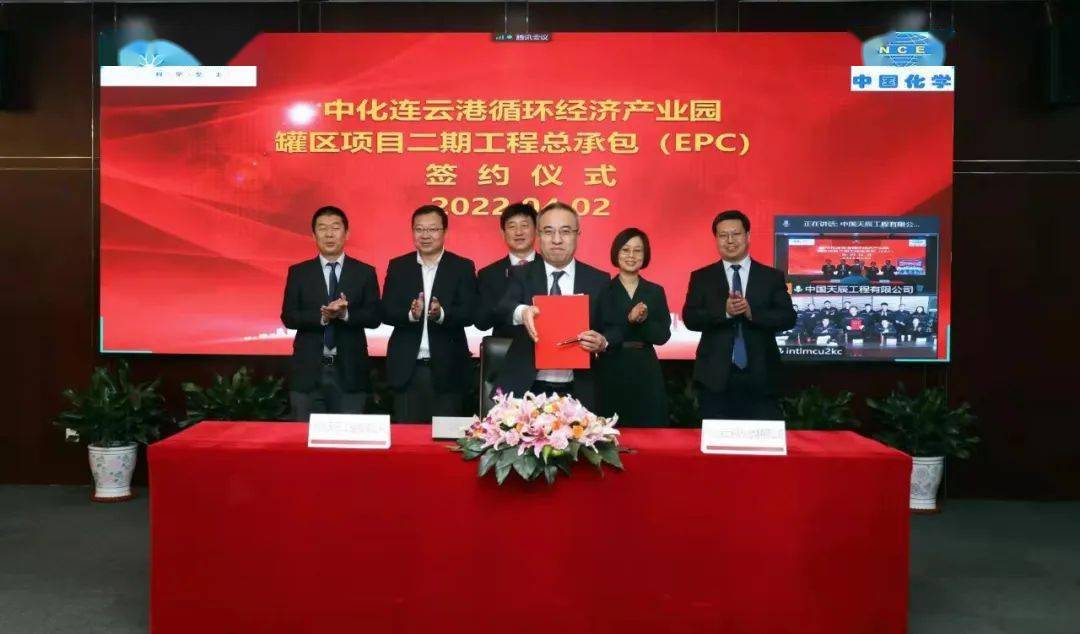 4月2日,中国化学天辰公司与中化连云港石化仓储有限公司通过“云签约”方式签署中化连云港循环经济产业园罐区二期项目工程总承包(EPC)合同。