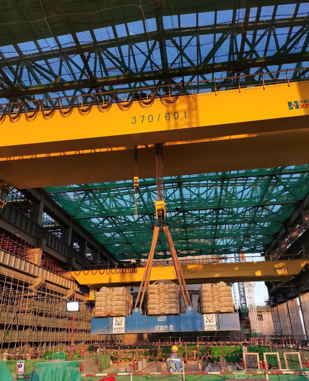 “华龙一号”漳州核电1号机组常规岛两台主行车上下错层布置,每台行车各配备两个吊钩,每个吊钩均需通过空载、额载、静载、动载等一系列试验验证。