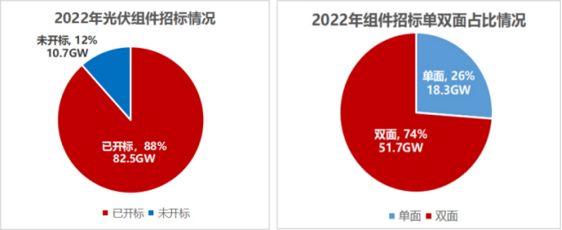 已公布单双面要求的招标共计69.9GW,其中,双面需求51.7GW,占比74%,较2021年占比增长13%,双面组件在大型地面电站应用继续提升!