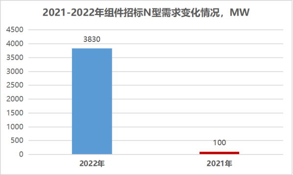 2022年已公布N型组件需求4230MW,较2021年全年增长4倍,根据测算,以N型TOPCON组件为例,TOPCON组件在项目端溢价约0.1元/瓦以上。