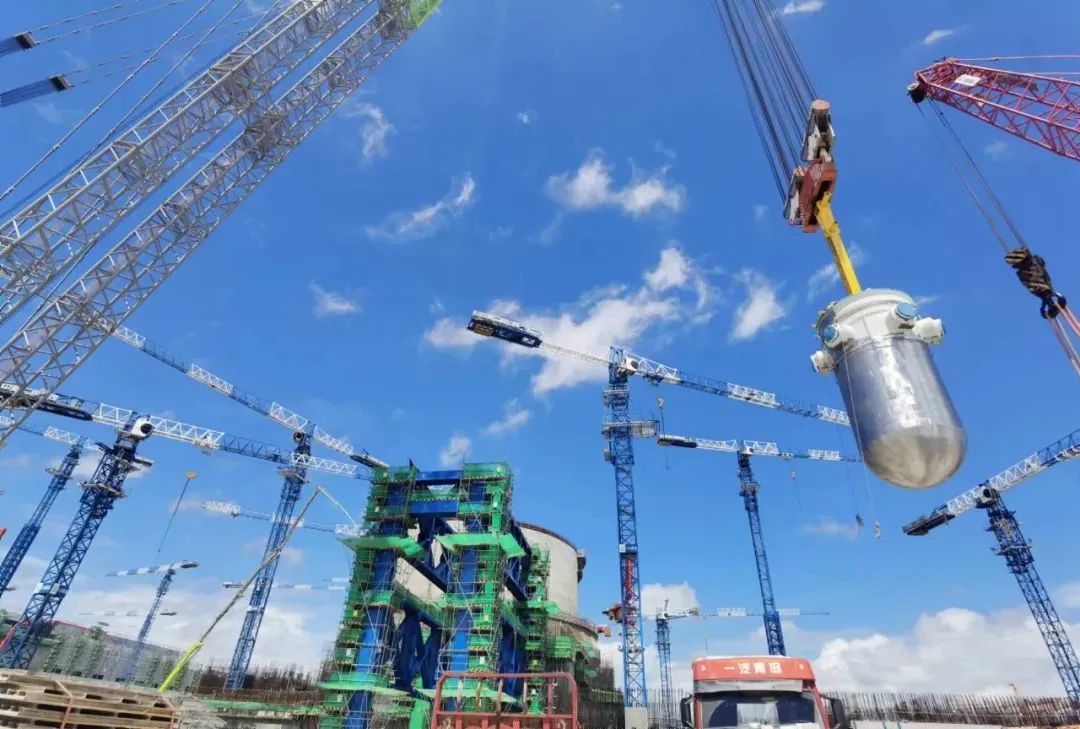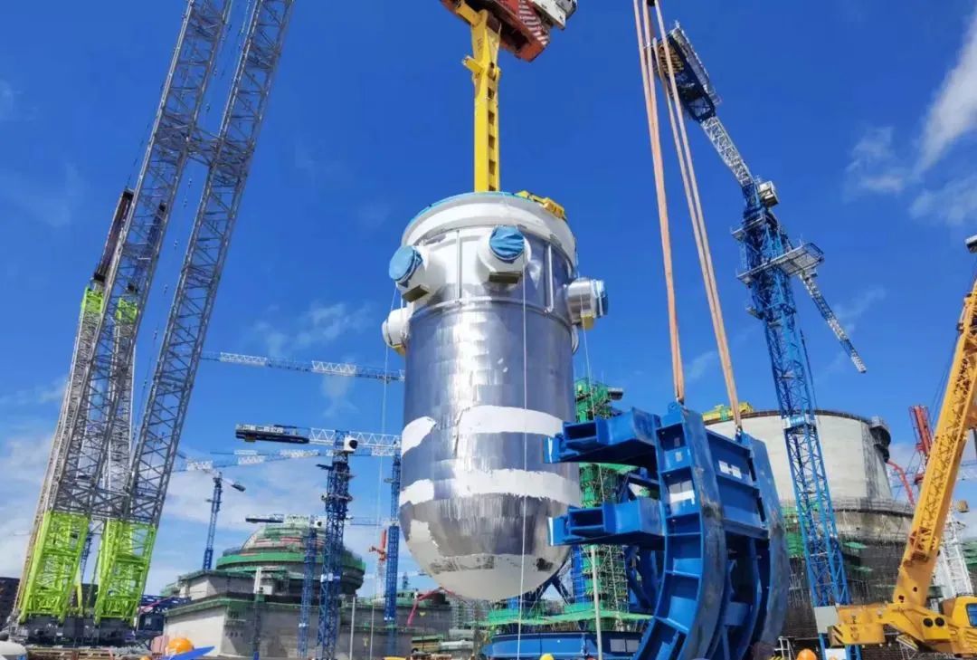8月9日,我国自主三代核电华龙一号批量化工程——中核集团漳州核电2号机组反应堆压力容器顺利吊装就位。这是该机组继三台蒸汽发生器吊装成功之后,主设备预引入工作再次取得的重大进展,为后续内穹顶吊装及主管道焊接创造了先决条件。