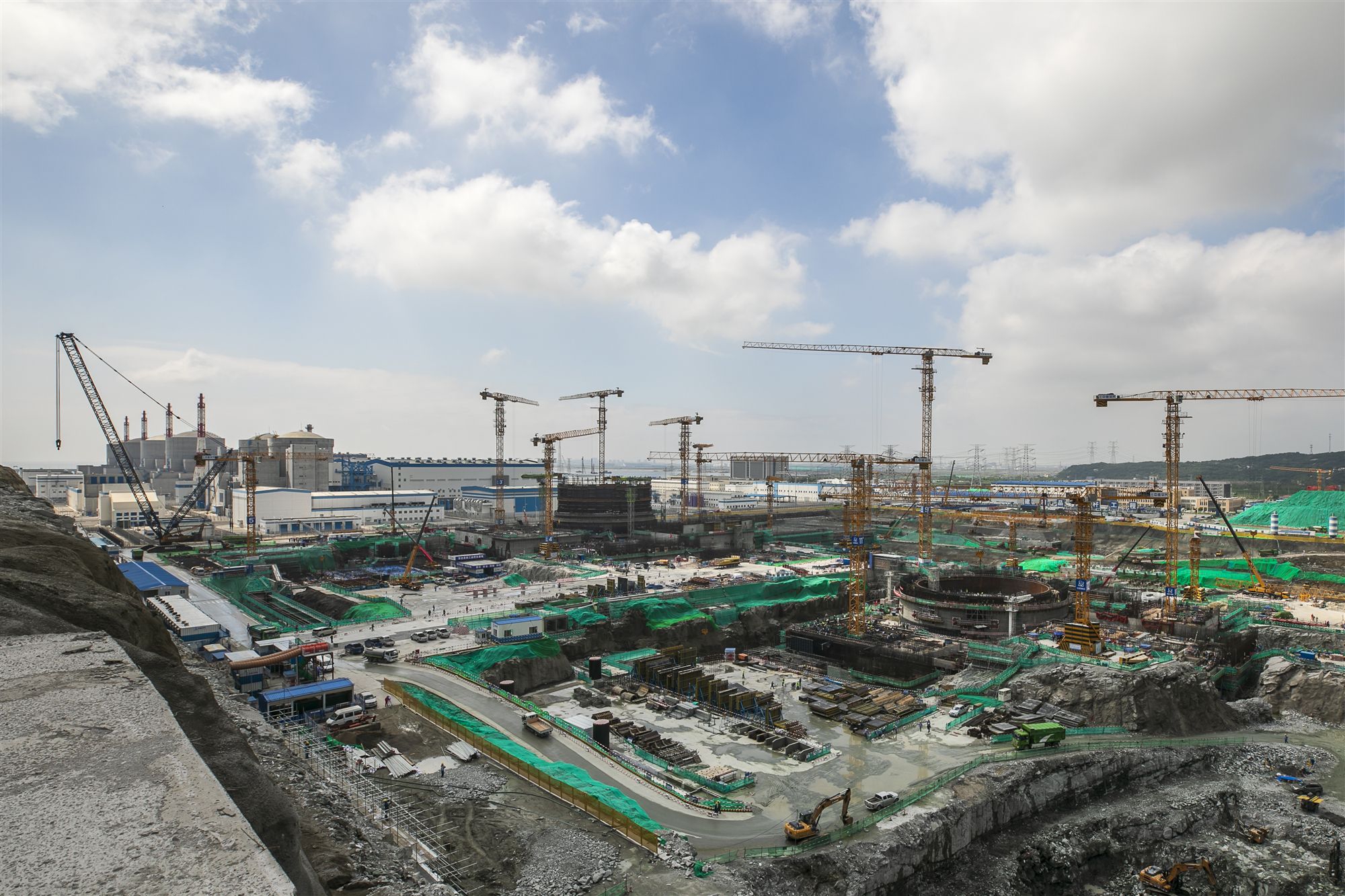 近日,在江苏省东北端的连云港,记者实地探访了田湾核电站。电站的东侧,是已建成发电的六台核电机组;西侧则是上述一片繁忙的建设施工场景,正在建设7号和8号核电机组。
