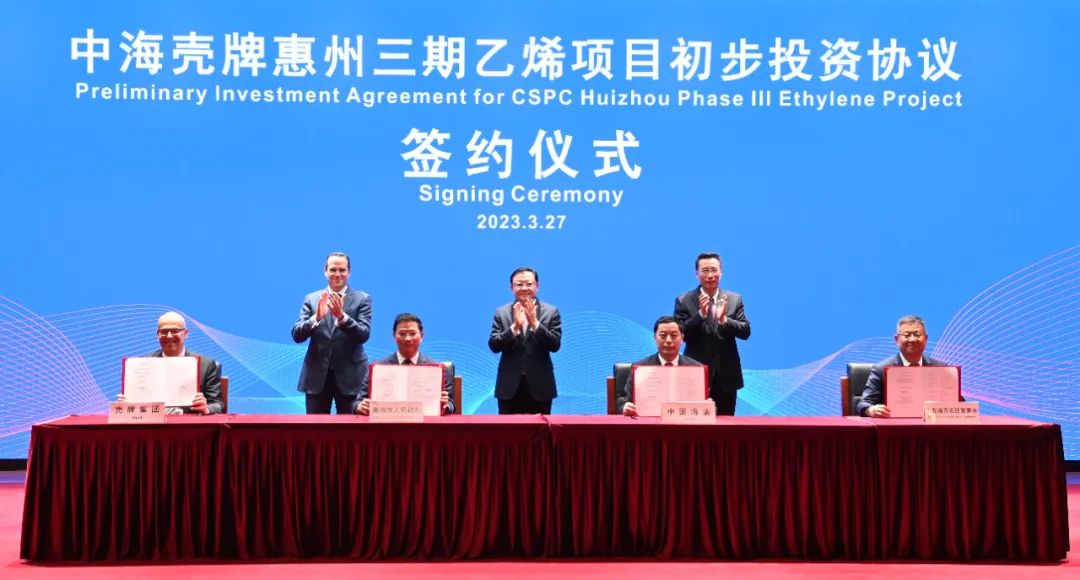 3月27日,中海壳牌惠州三期乙烯项目初步投资协议签约仪式在北京中国海油大厦举行。本次协议的签署标志着中国海油与壳牌集团在多年深入合作的基础上,再度携手谱写炼化一体化新篇章。