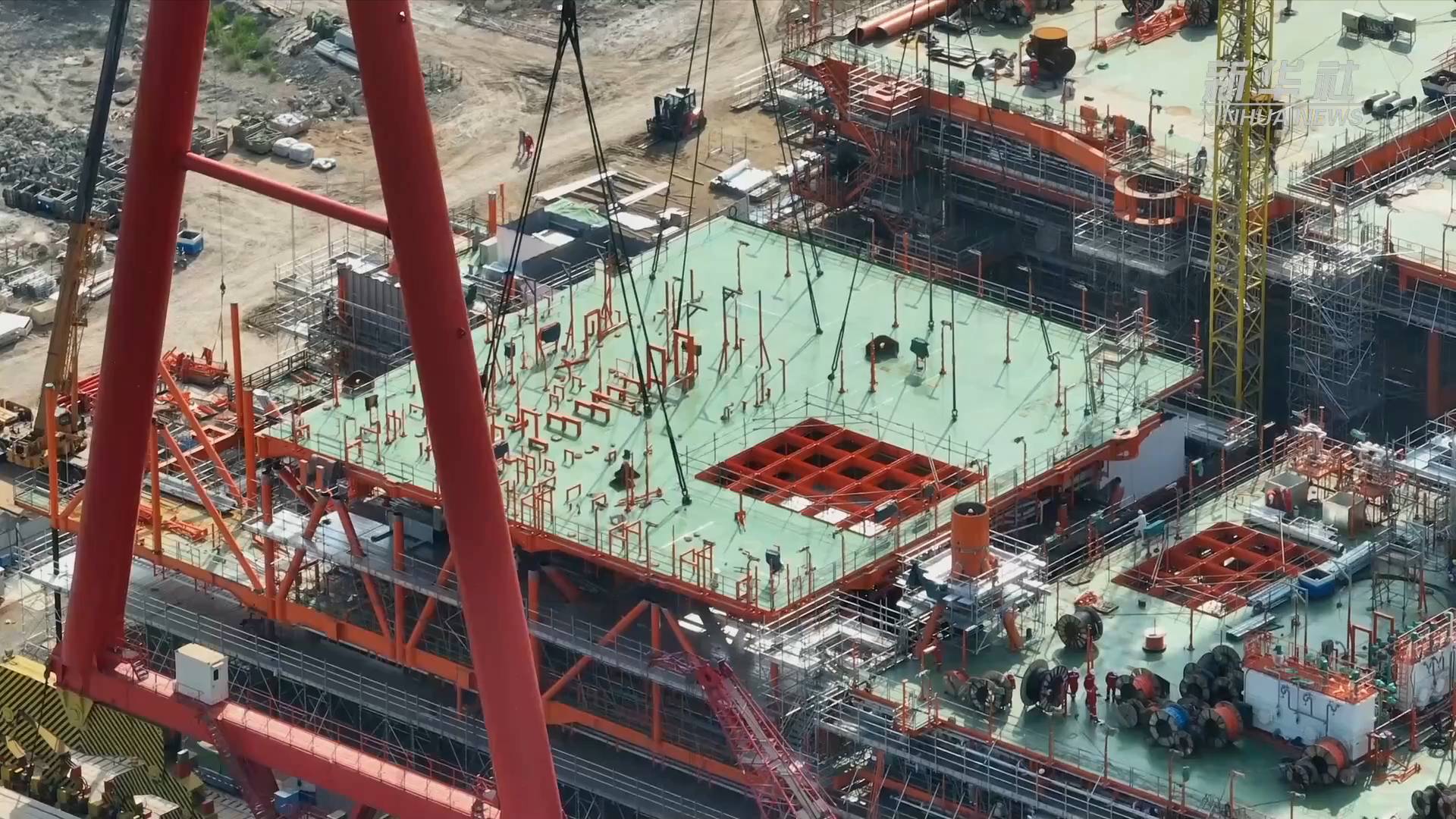 据介绍,中心平台设计油气年处理能力超500万吨,平台在陆地完成拖拉装船、固定、检验后,将于7月运往海上开展安装、连接、调试工作,预计年底投入试生产。