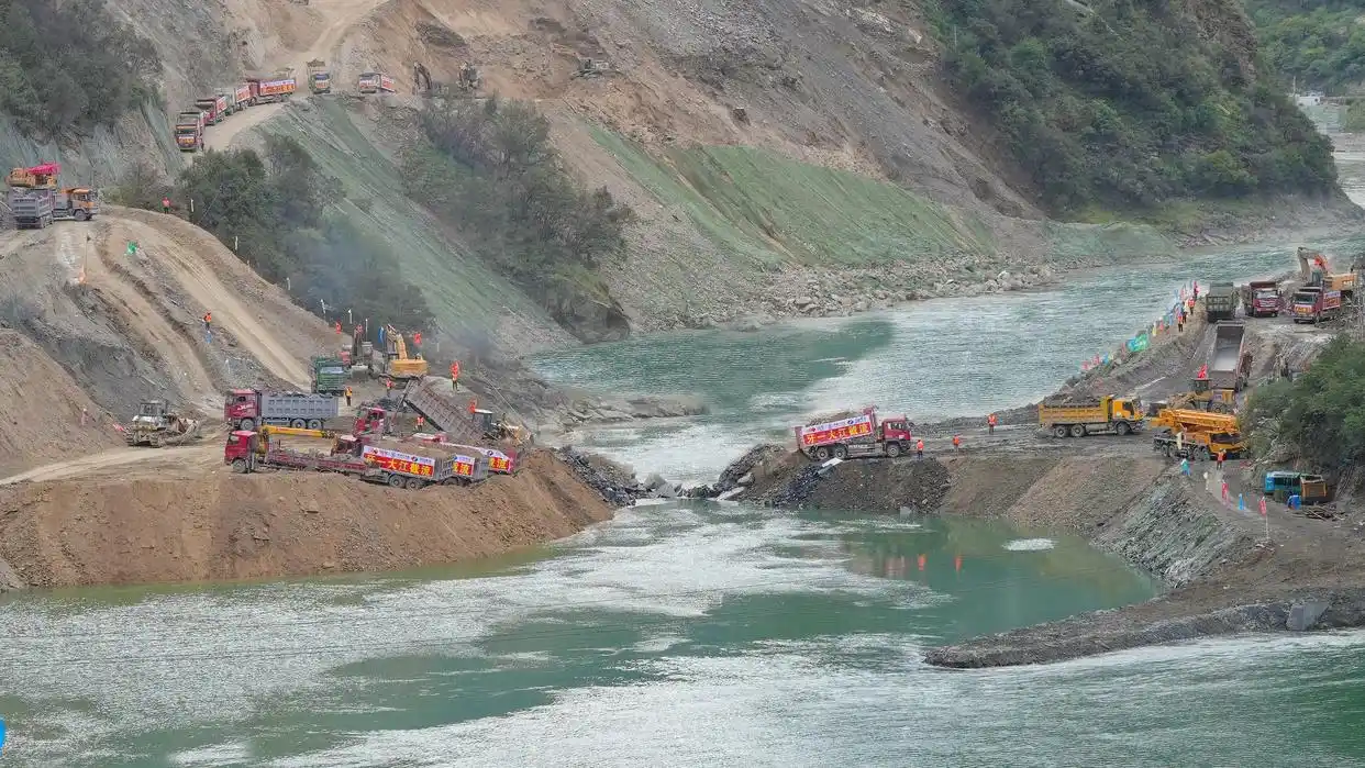 10月28日上午,在川西高原的雅砻江中游河段,随着最后一车石料倾泻而下,精准落入湍急的龙口,总装机270万千瓦的两座大型水电站——孟底沟水电站、牙根一级水电站实现同步大江截流,标志着雅砻江流域水风光一体化基地将再建两座主力电源,项目建设迈入主体工程施工新阶段。