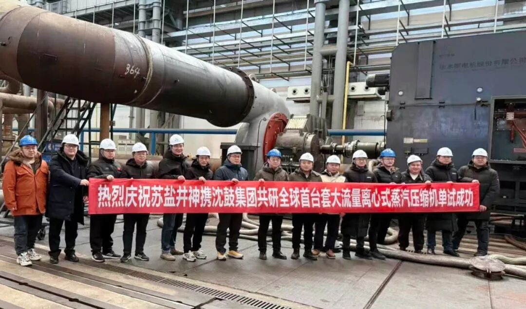 该压缩机将应用于全球最大的单体制盐装置工程——苏盐井神储气库卤水制盐综合利用工程。作为MVR蒸发工艺系统的核心“心脏”,该项目的研制被设立为沈鼓“集团级共产党员工程”并喜结硕果,实现了国产高端装备制造领域重大技术的又一次飞跃,为用户整体项目进展取得重大突破,为盐+储能领域发展提供了坚强保障。