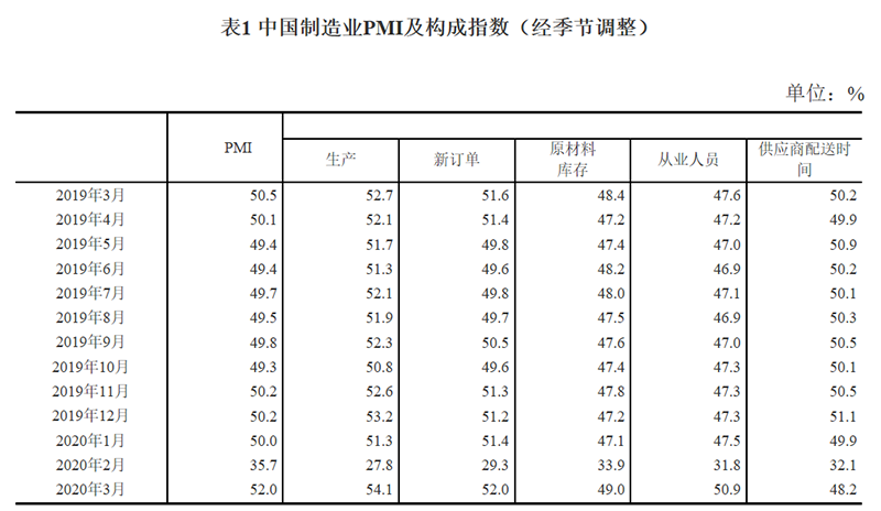 3月份,中国制造业采购经理指数(PMI)为52.0%,比上月回升16.3个百分点。